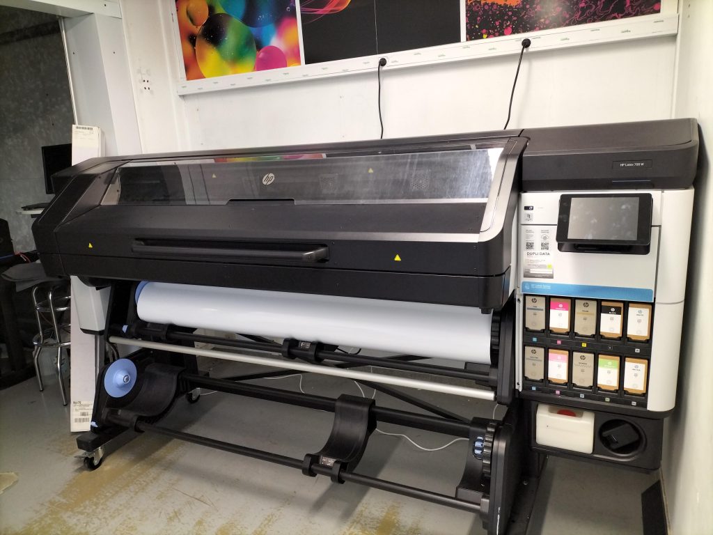 Notre traceur HP Latex 700W nous donne accès à un grand éventail de possibilité. Sa largeur d’impression maximale de 1630 mm nous permet d’imprimer des plus grands formats et son système CMJN+Blanc est capable de réaliser les vitrophanies les plus complexes.