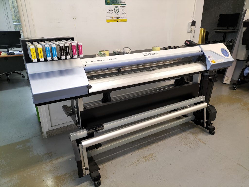 Équipée de la fonction Print & Cut, le traceur Roland VS-540i offre un vrai gain de temps dans la production. De plus, son système d’encre éco-solvant permet une meilleure tenue de l’impression dans le temps ainsi qu’une meilleure durabilité des supports utilisés en extérieur.